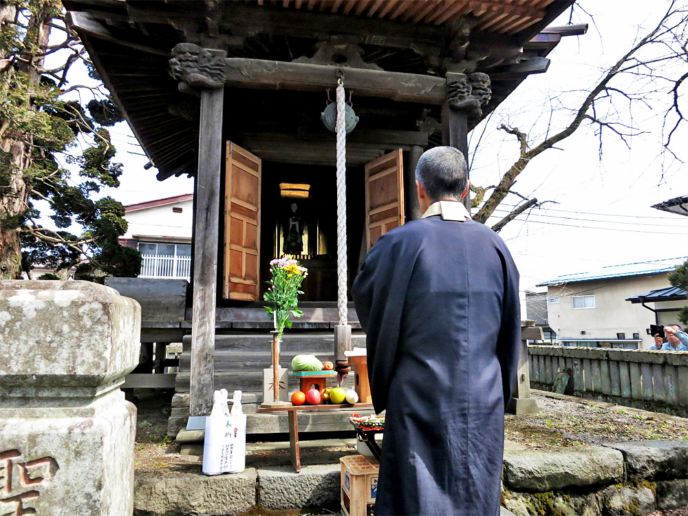 如来寺から僧侶が読経しに参ります。虚空蔵菩薩(お地蔵様)に子供の健やかな成長を願う行事です。