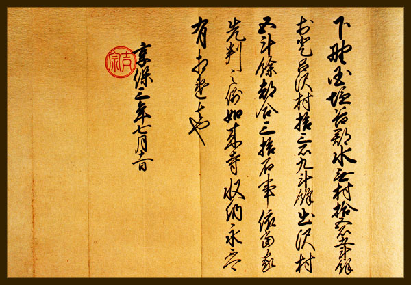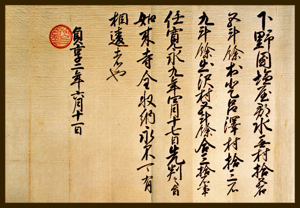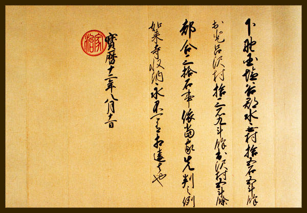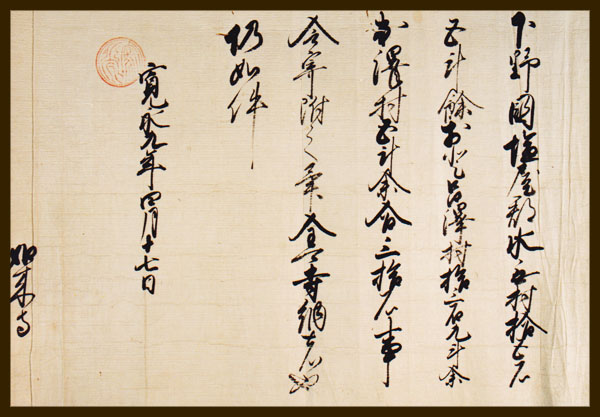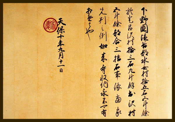 水無、荊沢両村合わせて30石の如来寺領は幕末まで続いています。如来寺に残る寛文8年の