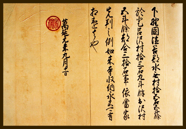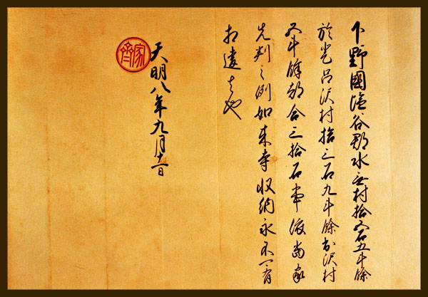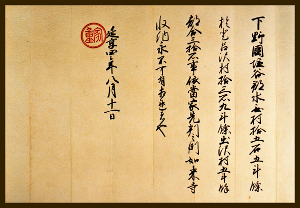 幕府から如来寺へ発行された証文をご紹介致します。現在は栃木県が保存・管理を行っておりますが、