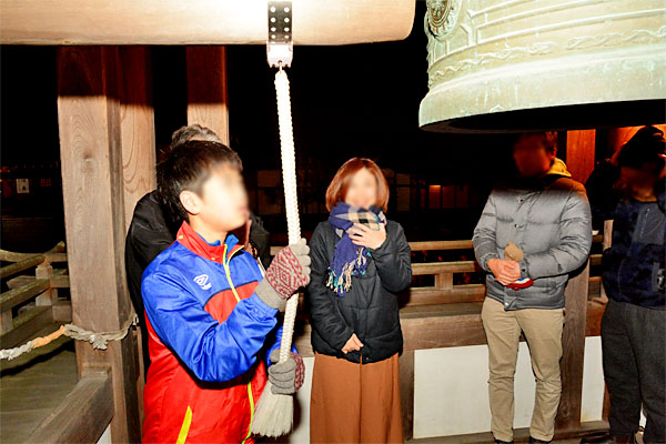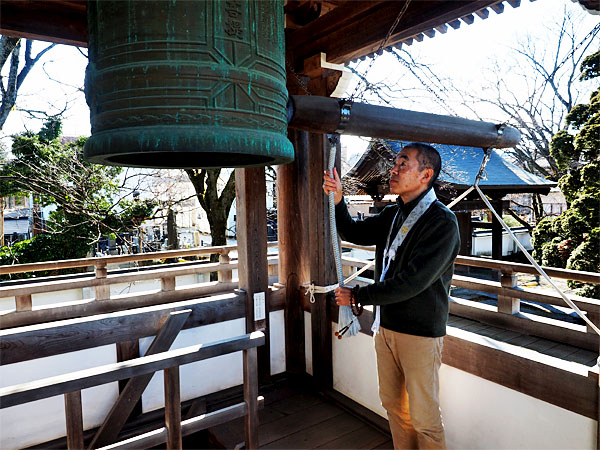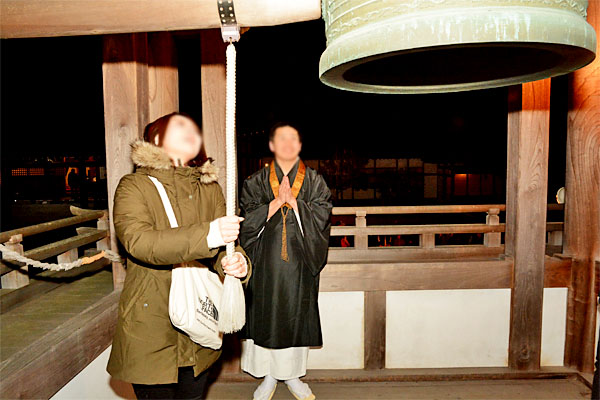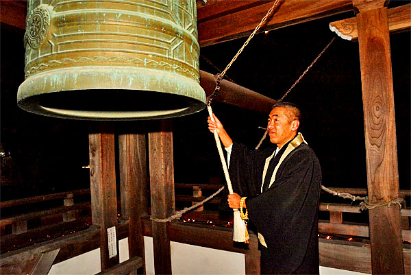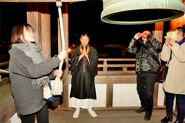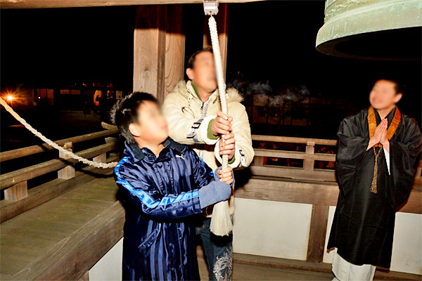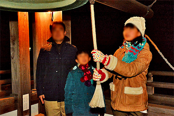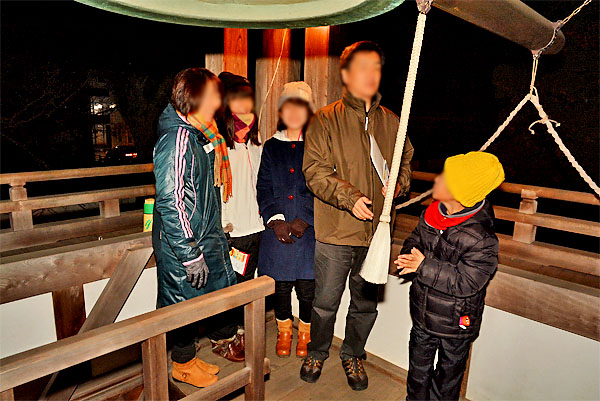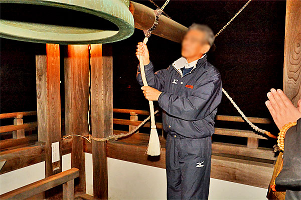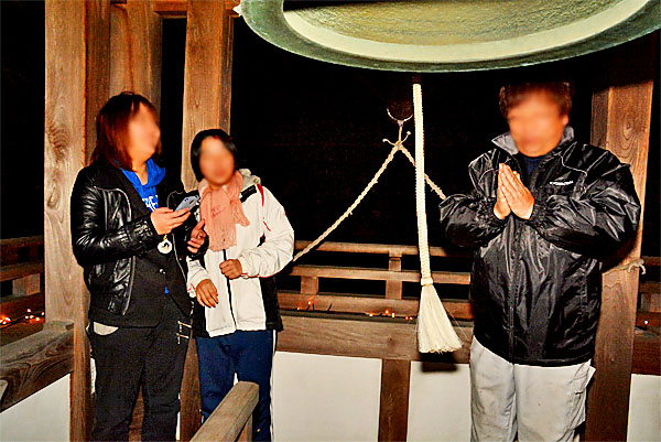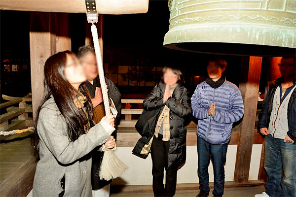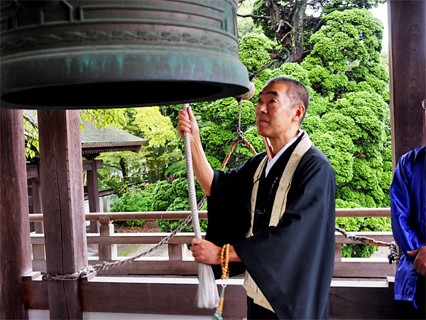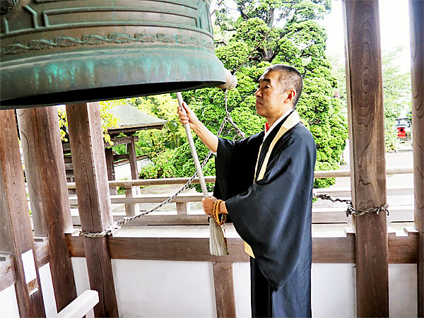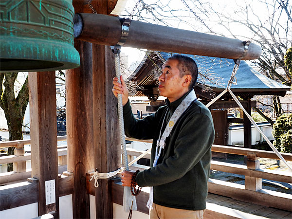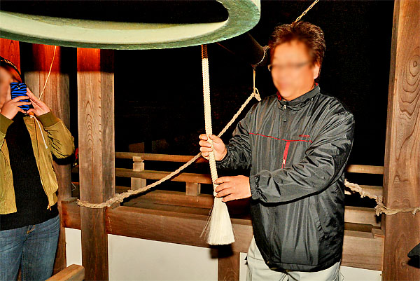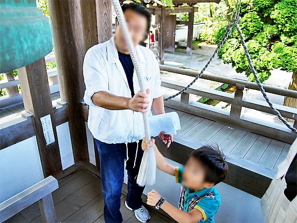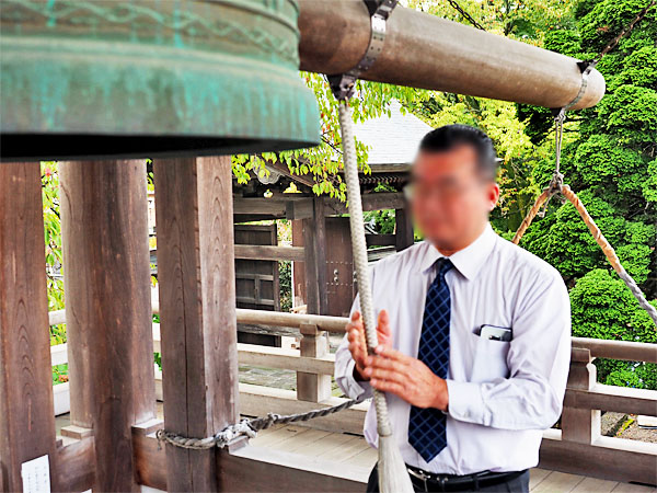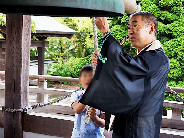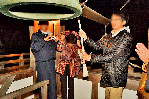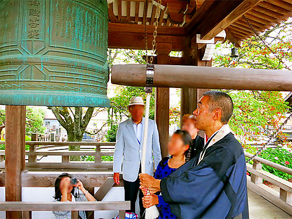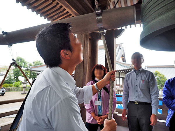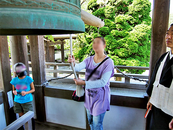 当寺では、ご参加頂いた方全てに、鐘楼堂に上がって頂き、一度ずつ鐘を撞いて頂きます。