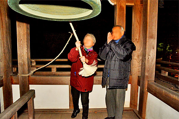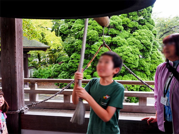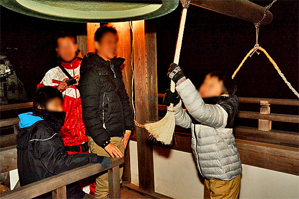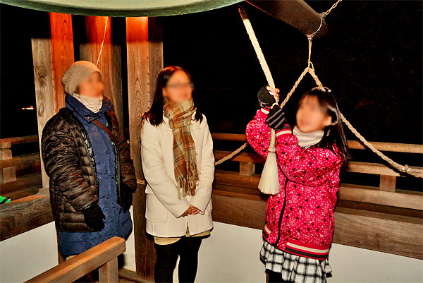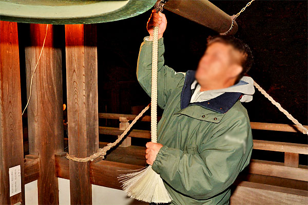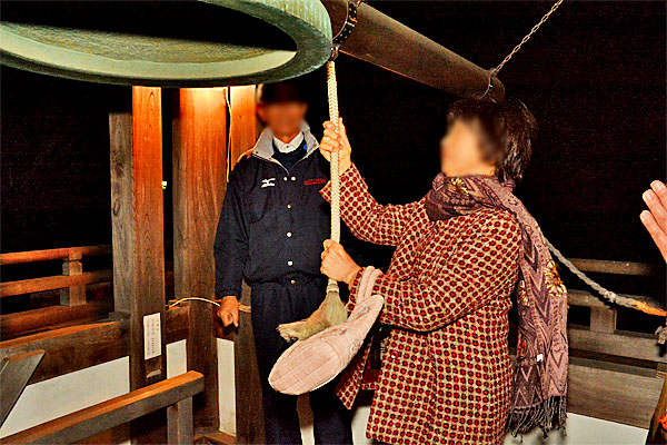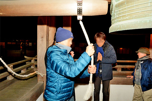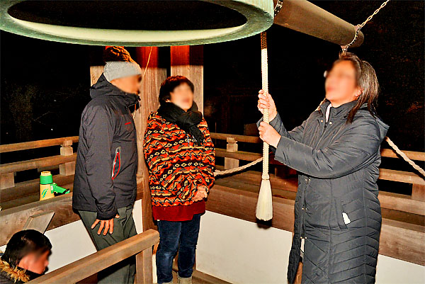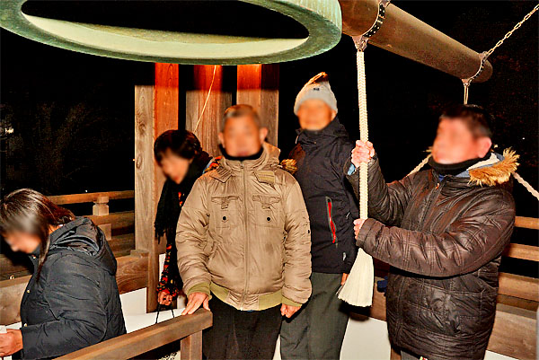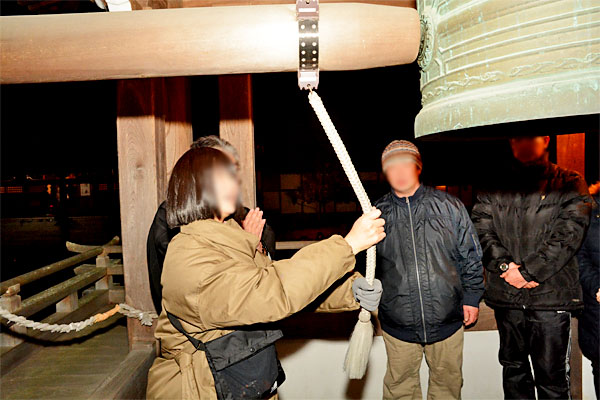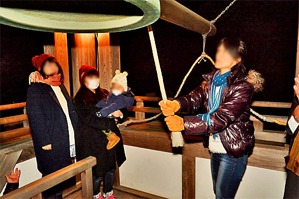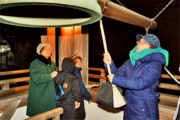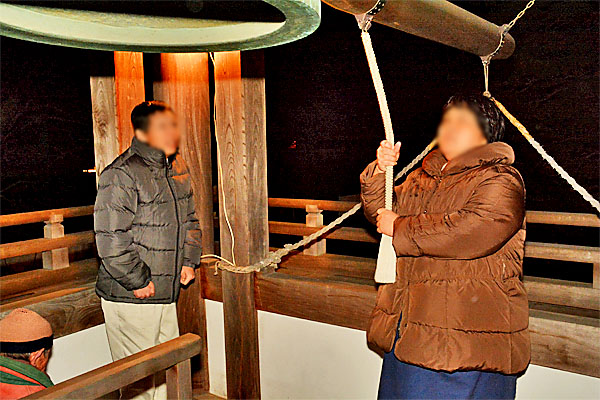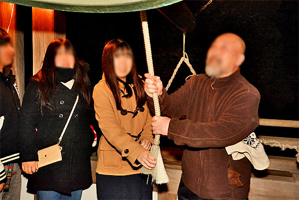 鐘楼堂に集まって頂いた皆様にお一人ずつに鐘を撞いて頂きます。
