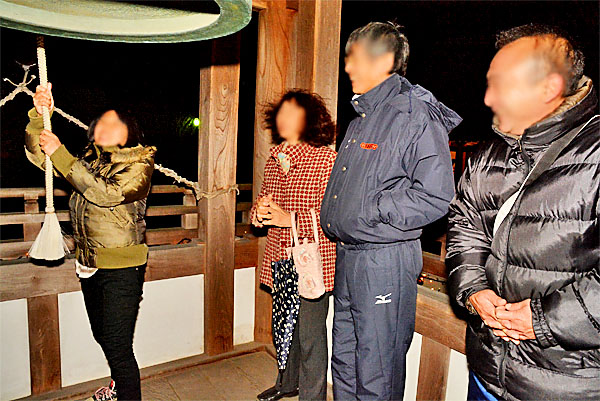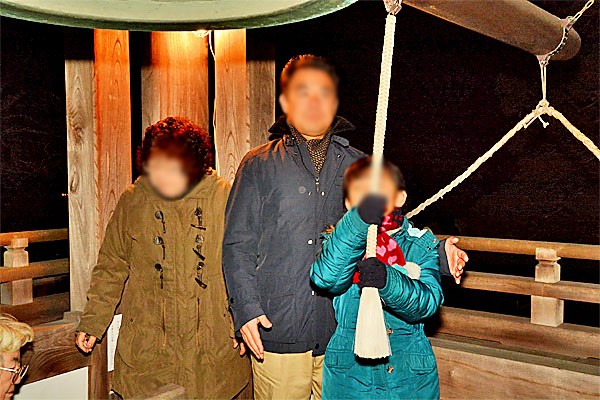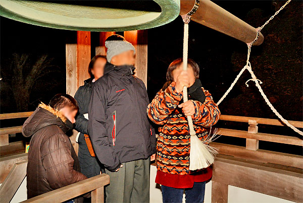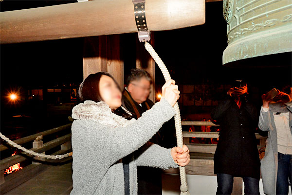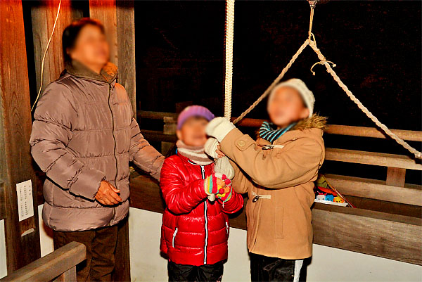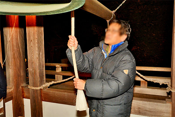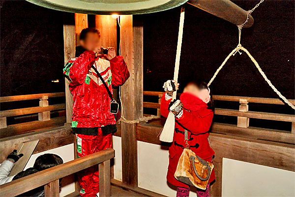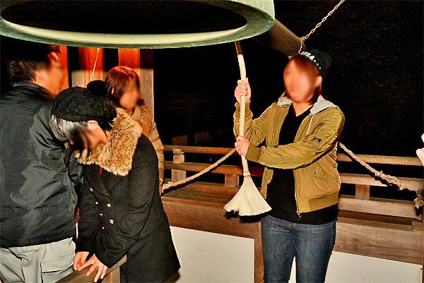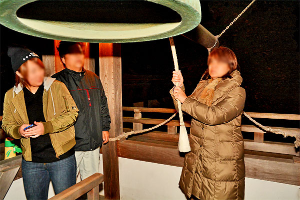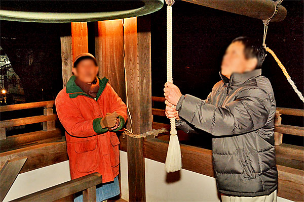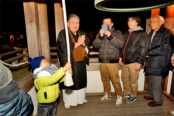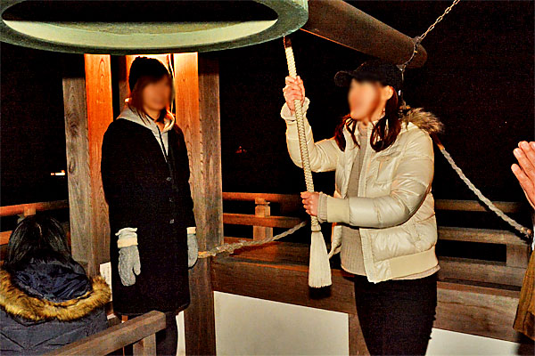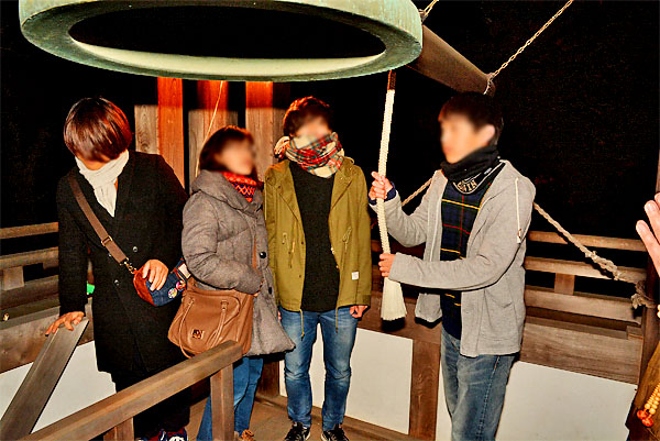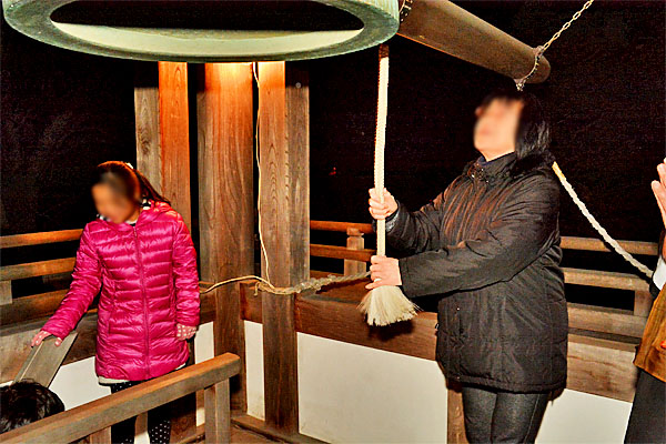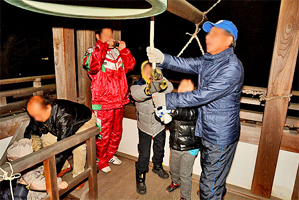 鐘楼堂に集まって頂いた皆様にお一人ずつに鐘を撞いて頂きます。