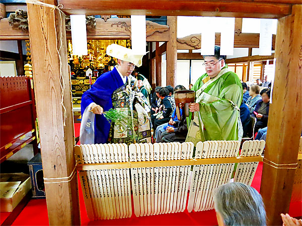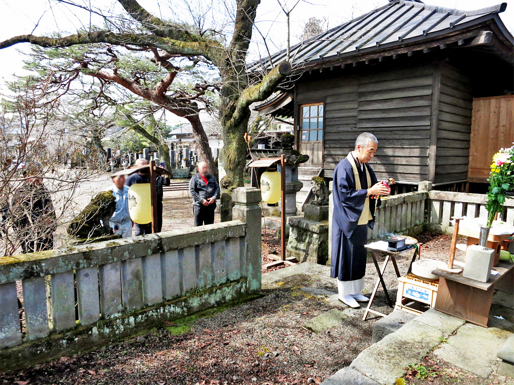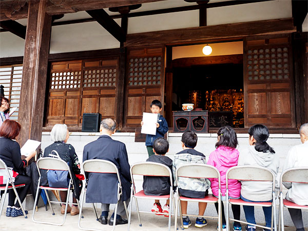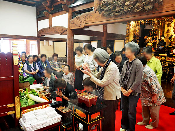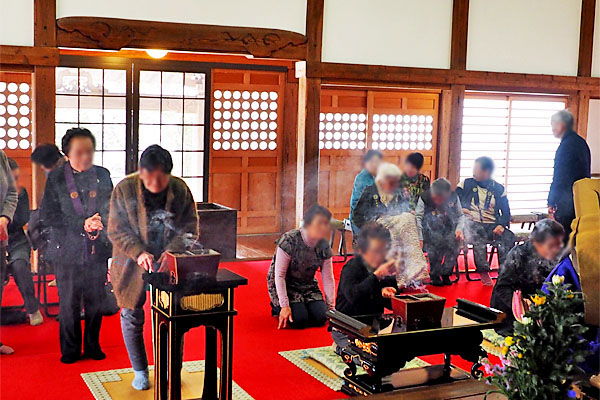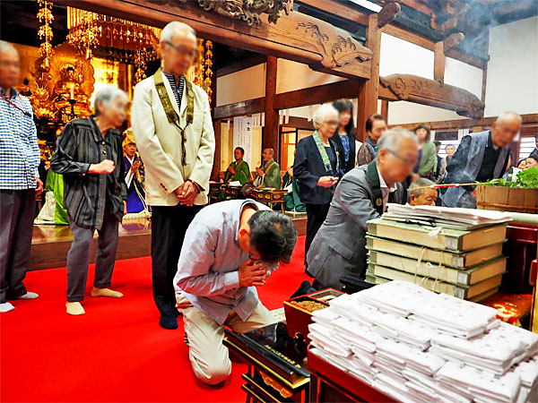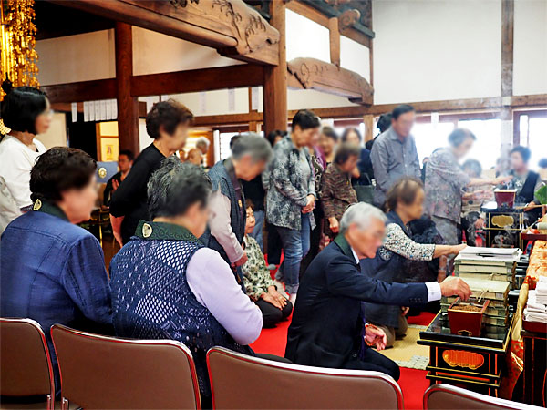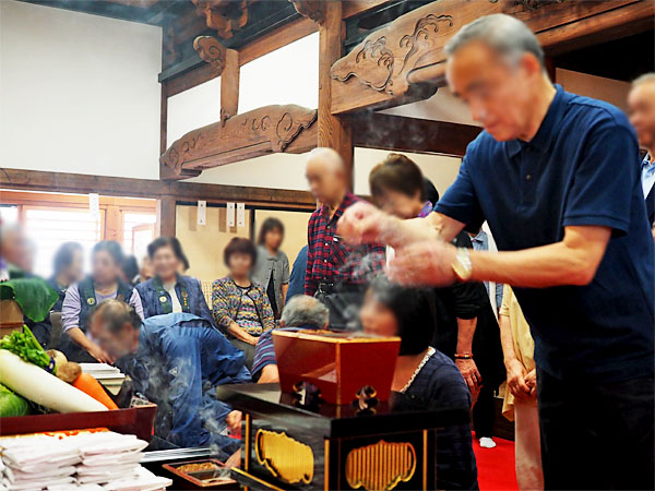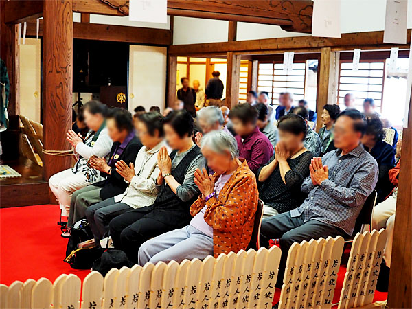 希望者の方が、塔婆を頼んで、それを本堂に並べて信者の方が集まって法要を行う行事です。
