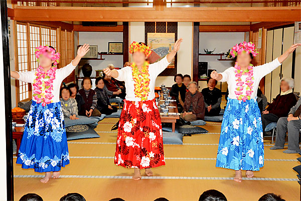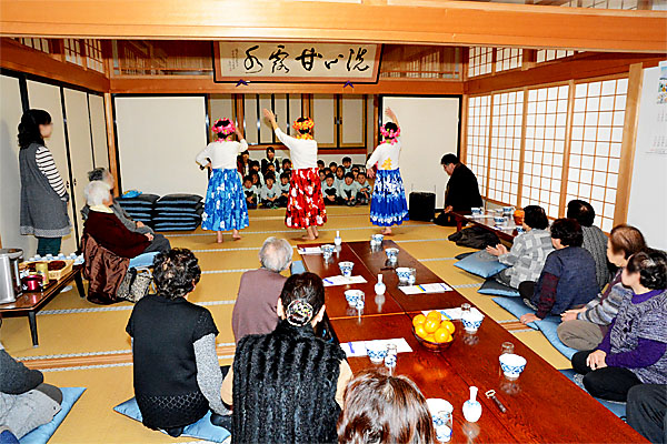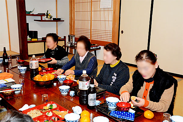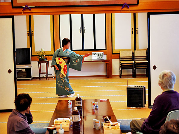 歌って聞かせてくれたり、大正琴の演奏、カラオケに合せて踊る民舞の出し物など、皆様新年会を