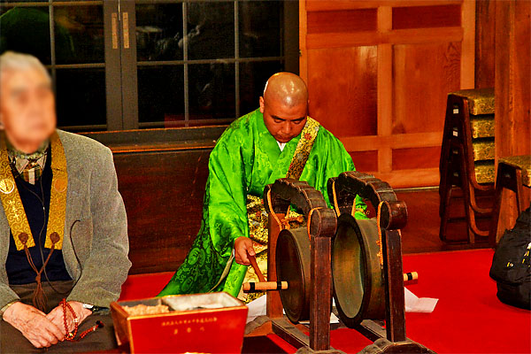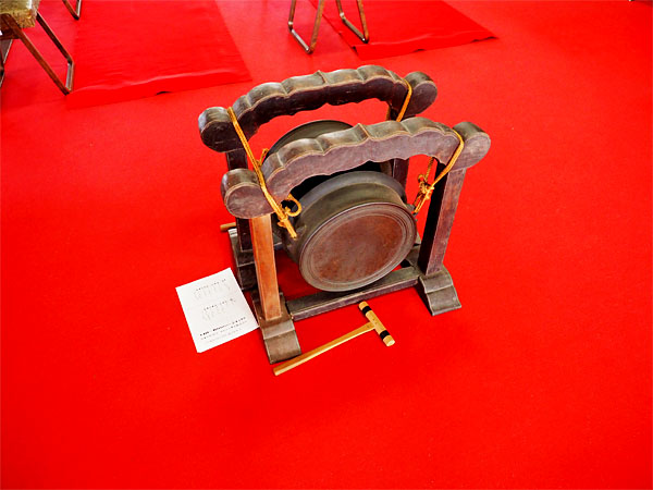 途中に出てくる2枚のドラのような物を叩いている様子の写真は、大きさの違う2つの双盤をたたきながら、