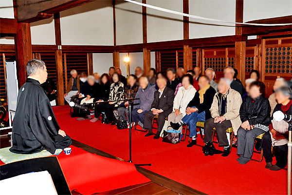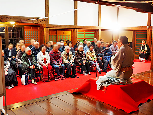 また、お十夜法要の際に、毎年落語家をお呼びして、皆さんで鑑賞致します。