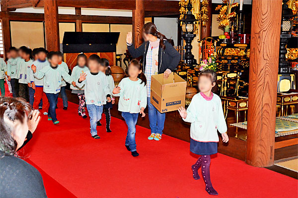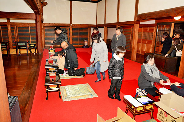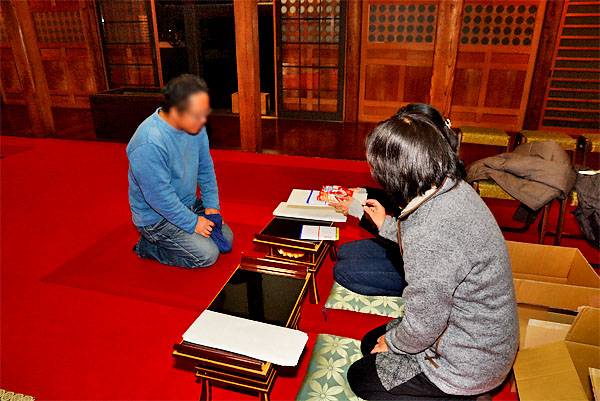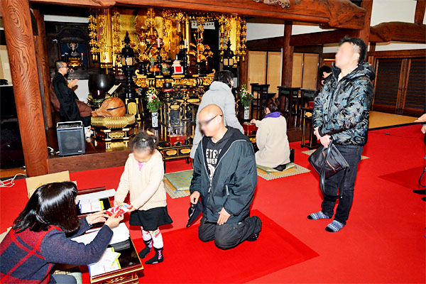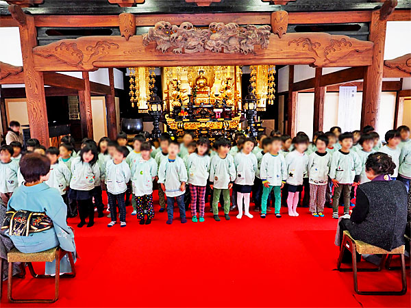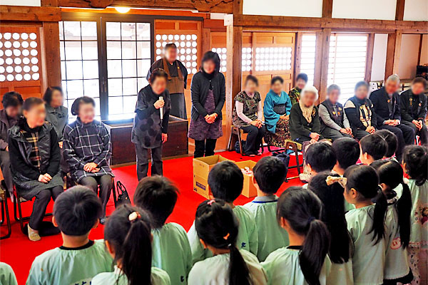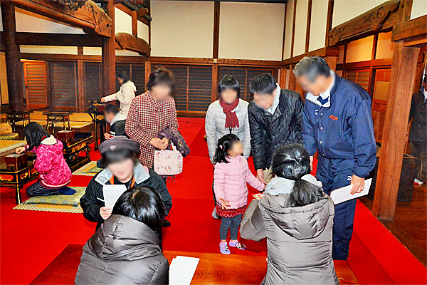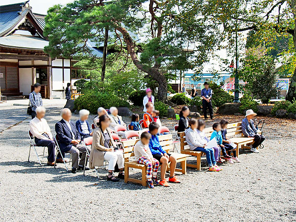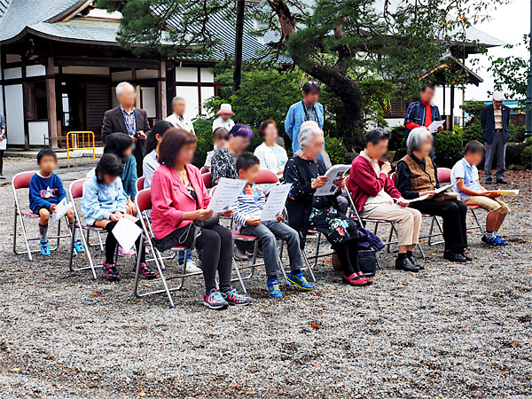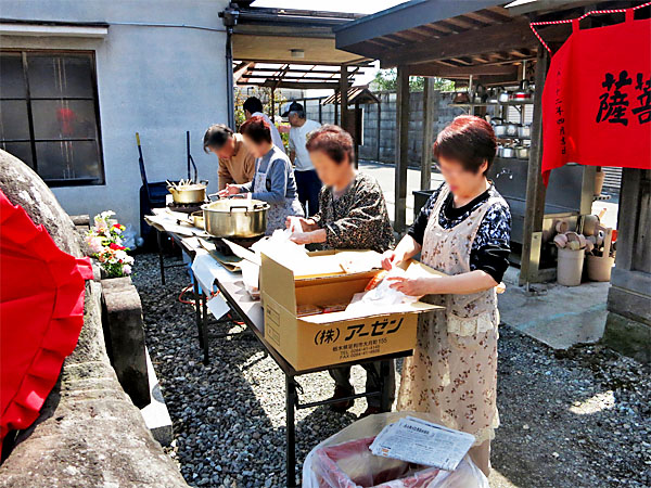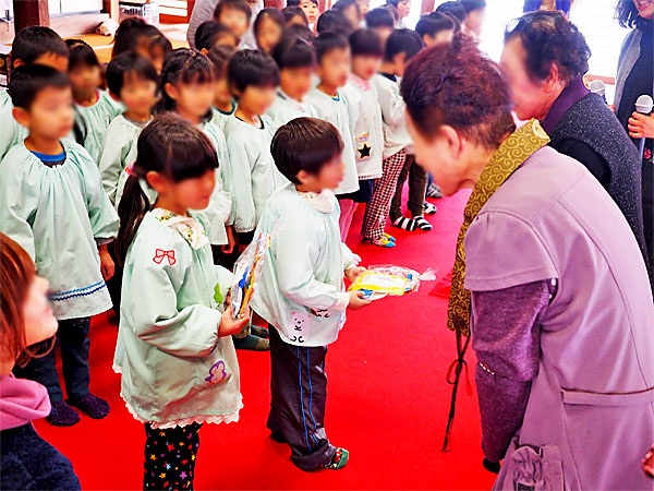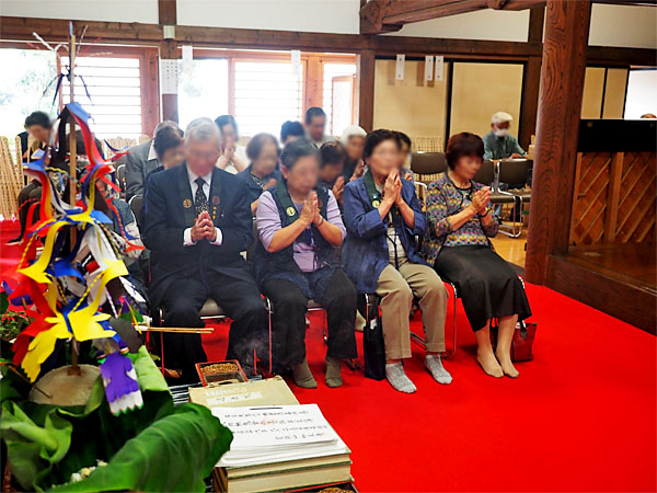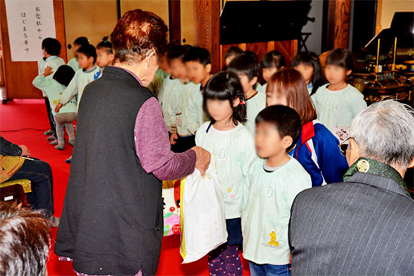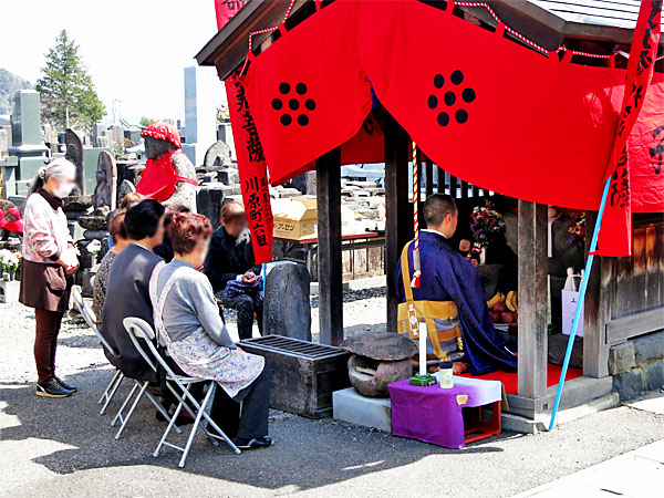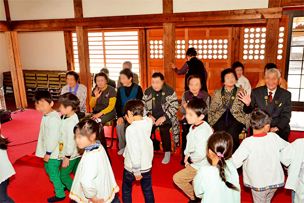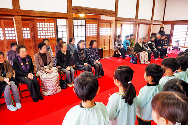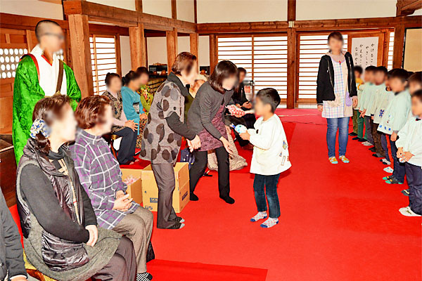 如来寺から僧侶が読経しに参ります。虚空蔵菩薩(お地蔵様)に子供の健やかな成長を願う行事です。