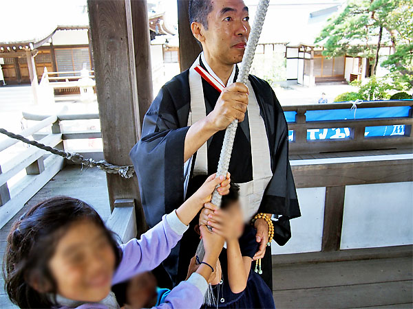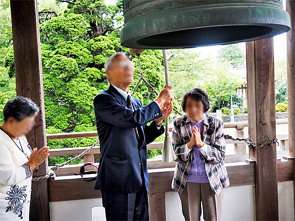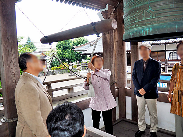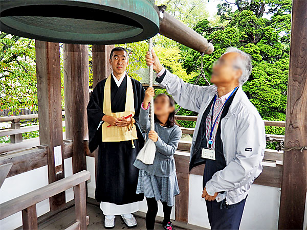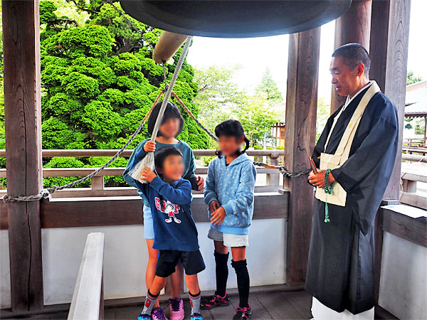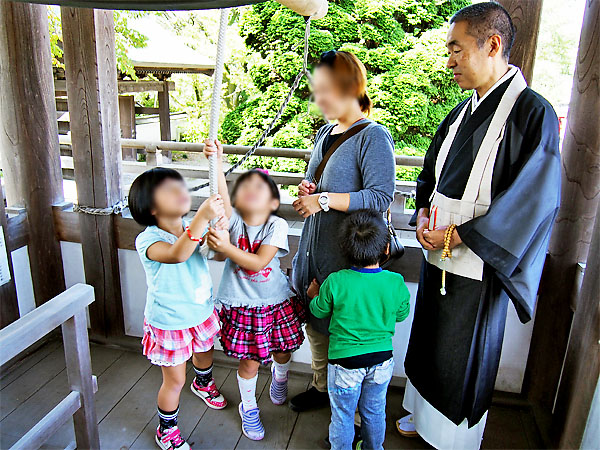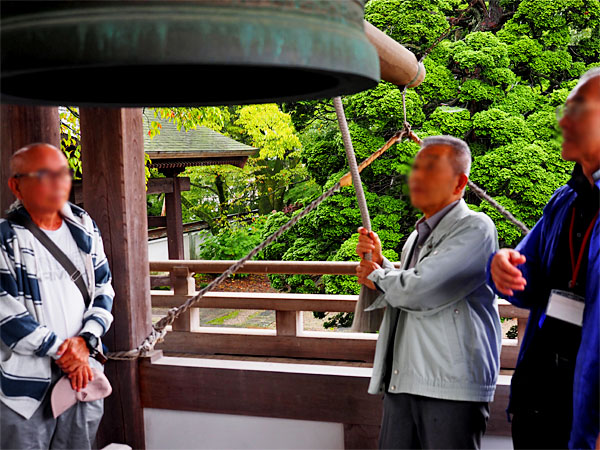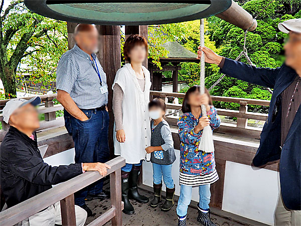当寺では、ご参加頂いたほとんどの方に、鐘楼堂に上がって頂き、一度ずつ鐘を撞いて頂きます。