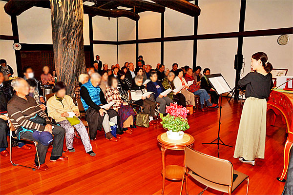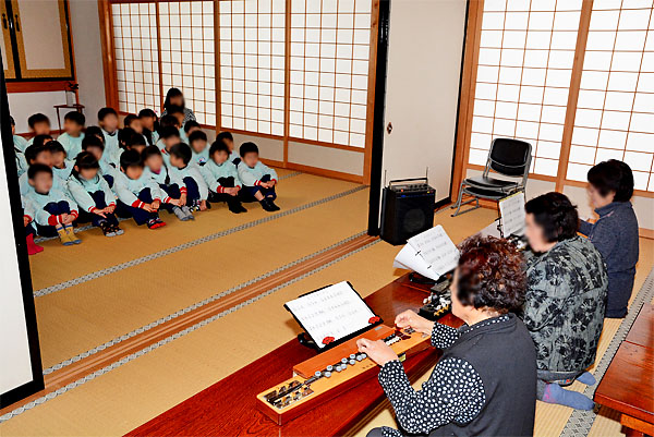 今市幼稚園の年長児の園児達による歌を聞いてもらい、その他会員の皆様による大正琴の演奏や詩吟、