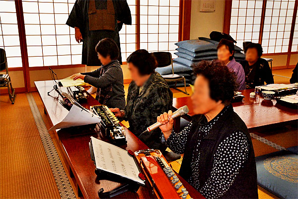 節をつけながら念仏を唱える双盤念仏の様子です。