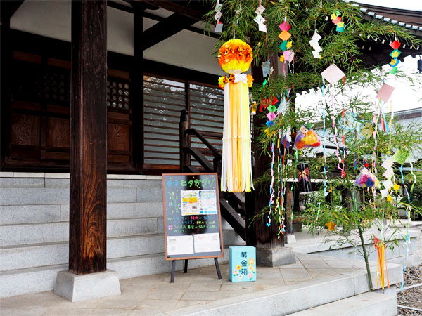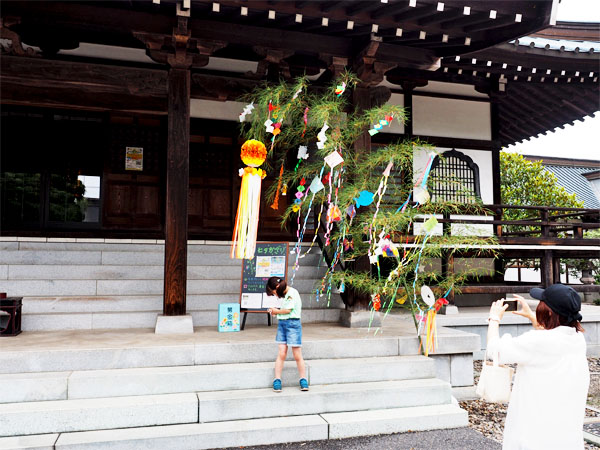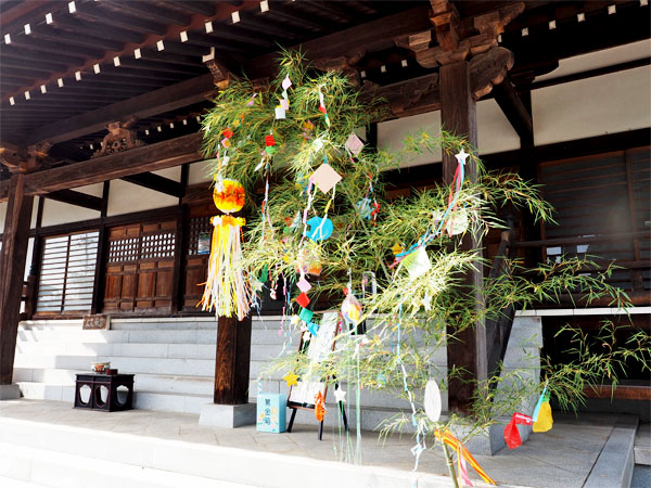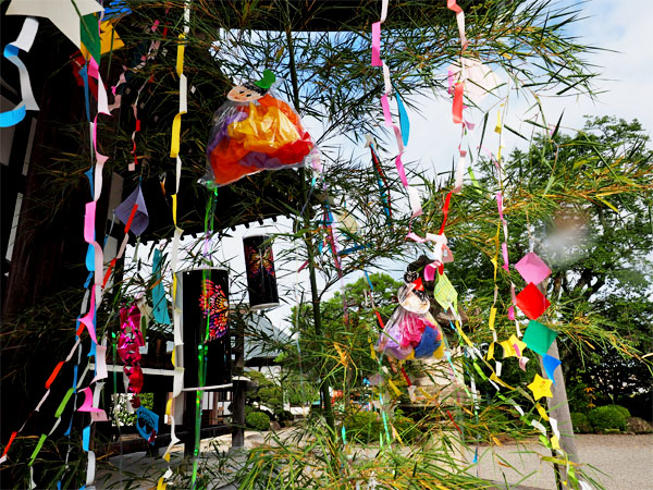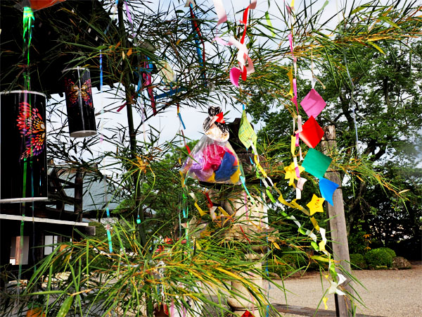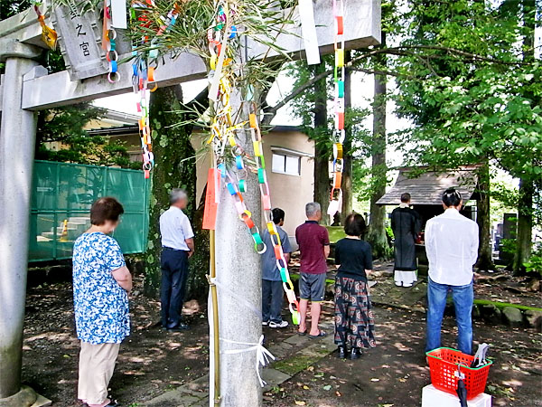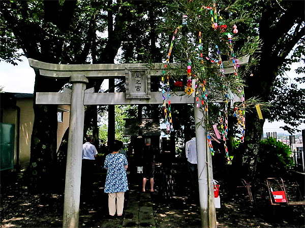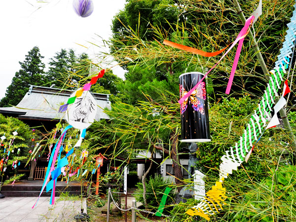 写真で見て頂くと分かると思いますが、七夕の笹飾り、お稲荷さんに鳥居があります。