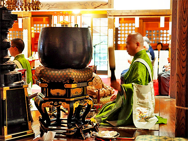 節をつけながら念仏を唱える双盤念仏の様子です。如来寺以外からも、栗山の龍蔵寺、足尾の呑龍寺より