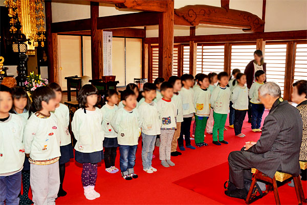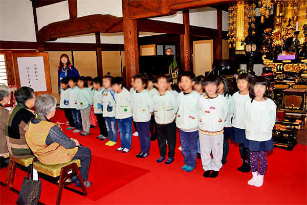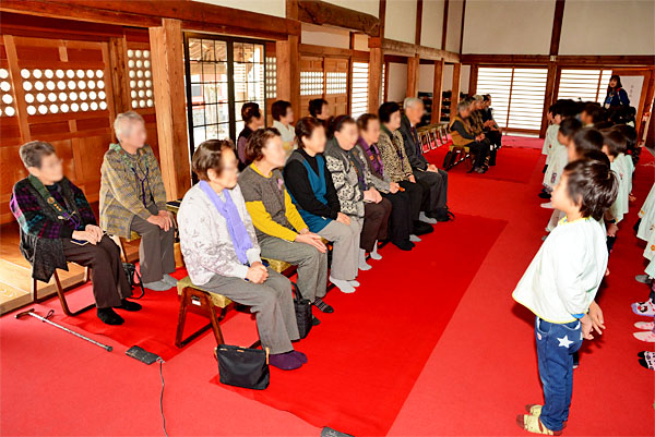今市幼稚園の年長児の園児達による歌を聞いてもらい、皆様楽しんでおられました。
