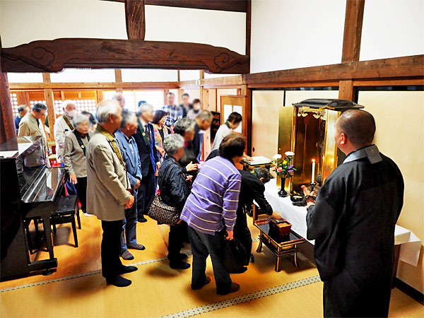 百万遍講という念仏講の講員の方が観音様のお堂の中で法要に参加頂きました。