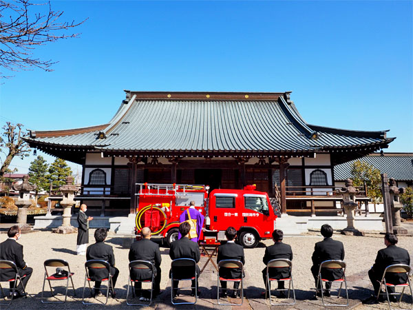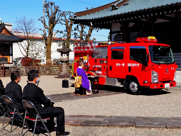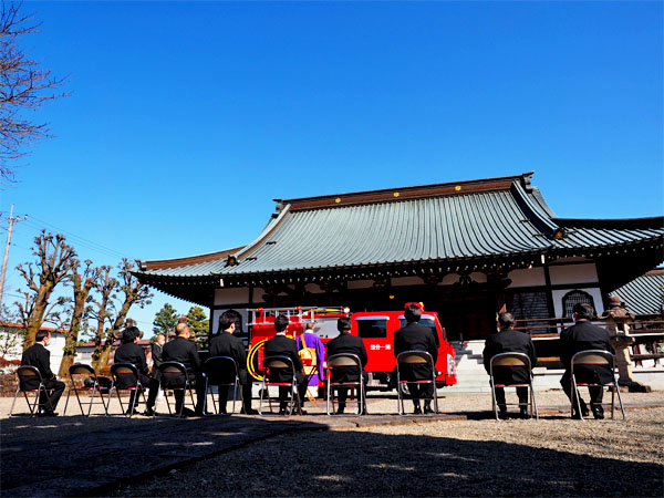 今市消防団に新しいポンプ車が入るのにあわせて、祈願法要にあたる入魂式を実施致しました。