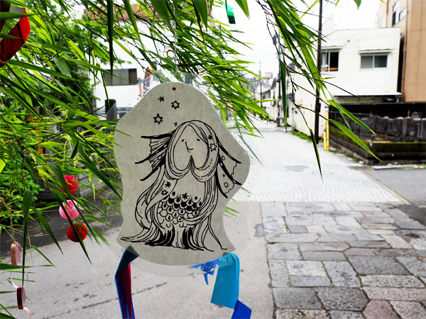 アーティスト『umi』さんが、オリジナルのキャラクターを書いて頂きましたので短冊にして飾りました。