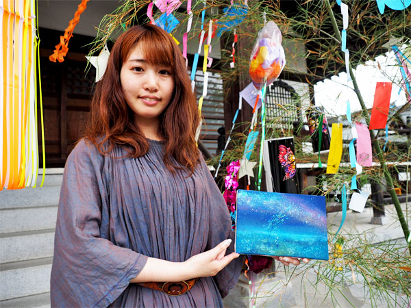 七夕イベントにあわせて、栃木県出身のアーティストのumiさんが来山されました。